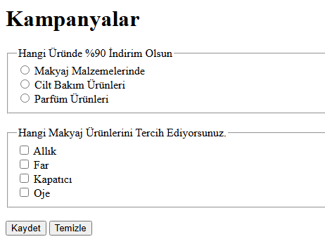 Kayır Formu Form Etiketi Kullanılarak Yaplına Örnek Çalışma.