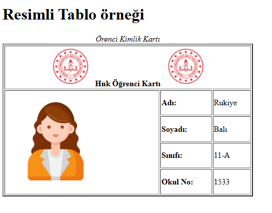 Tablo etiketini öğrendikten sonra kavramak için içene resim kunalan bir tablo ile öğrenci kartı oluşturuldu.