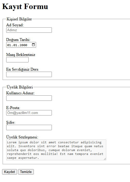 Kayır Formu Form Etiketi Kullanılarak Yaplına Örnek Çalışma.
